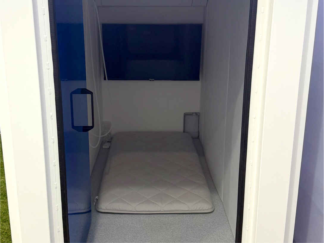 スマホやテレビを視聴しながら休息することができます。ボックス内は、エアコン完備のため快適な温度で利用いただけます。隙間時間でリプレッシュ!